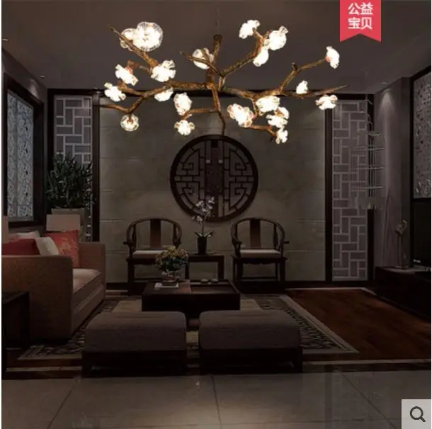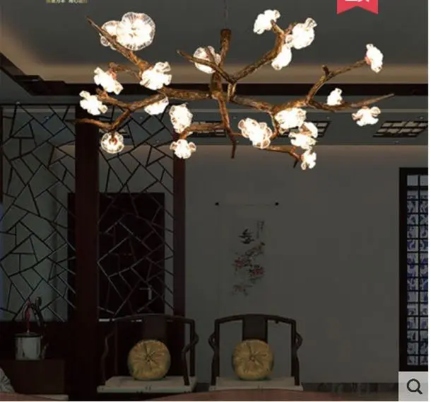 BEST Natural style Chinese style chandelier branches plum blossom theme restaurant box tea house Zen tea